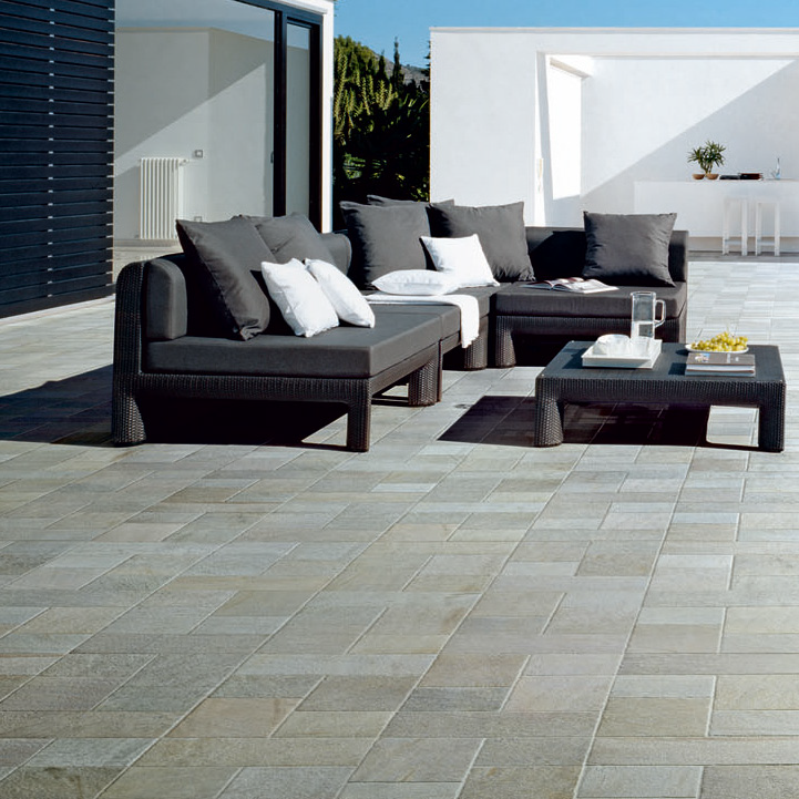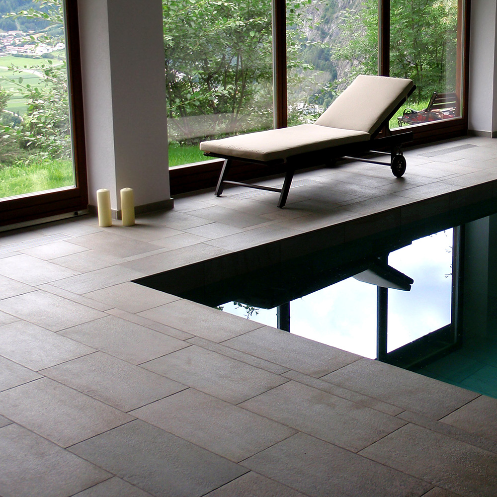 Barge Grigia kommer fra italienske Panaria. Porcellanatoflisen er en frostsikker gulvflis med høy ripefasthet som kan benyttes både inne- og utendørs.