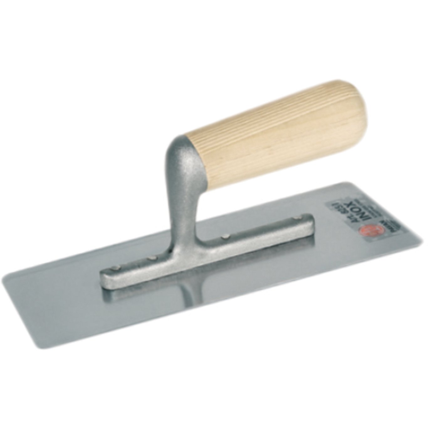 Pavan kvalitetsverktøy produsert i Italia. For overflater i mikrosement, Marmorino og lignende. Et brett som kombinerer topp kvalitet med gunstig pris. Behagelig trehåndtak, støtte i stål. Trapesformet blad i polert rustfritt stål tykkelse 0,6 mm. Bladet har skrånet kant for best resultat. Avrundete hjørner.