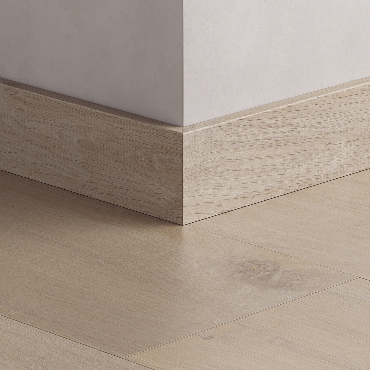 For å få et sømløst resultat finnes det alltid en sokkellist som matcher ditt Pergo laminatgulv perfekt, både struktur- og fargemessig. Overflaten er laget av slite- og ripebestandig laminat, kjernen av MDF, og bunnen av plast.
