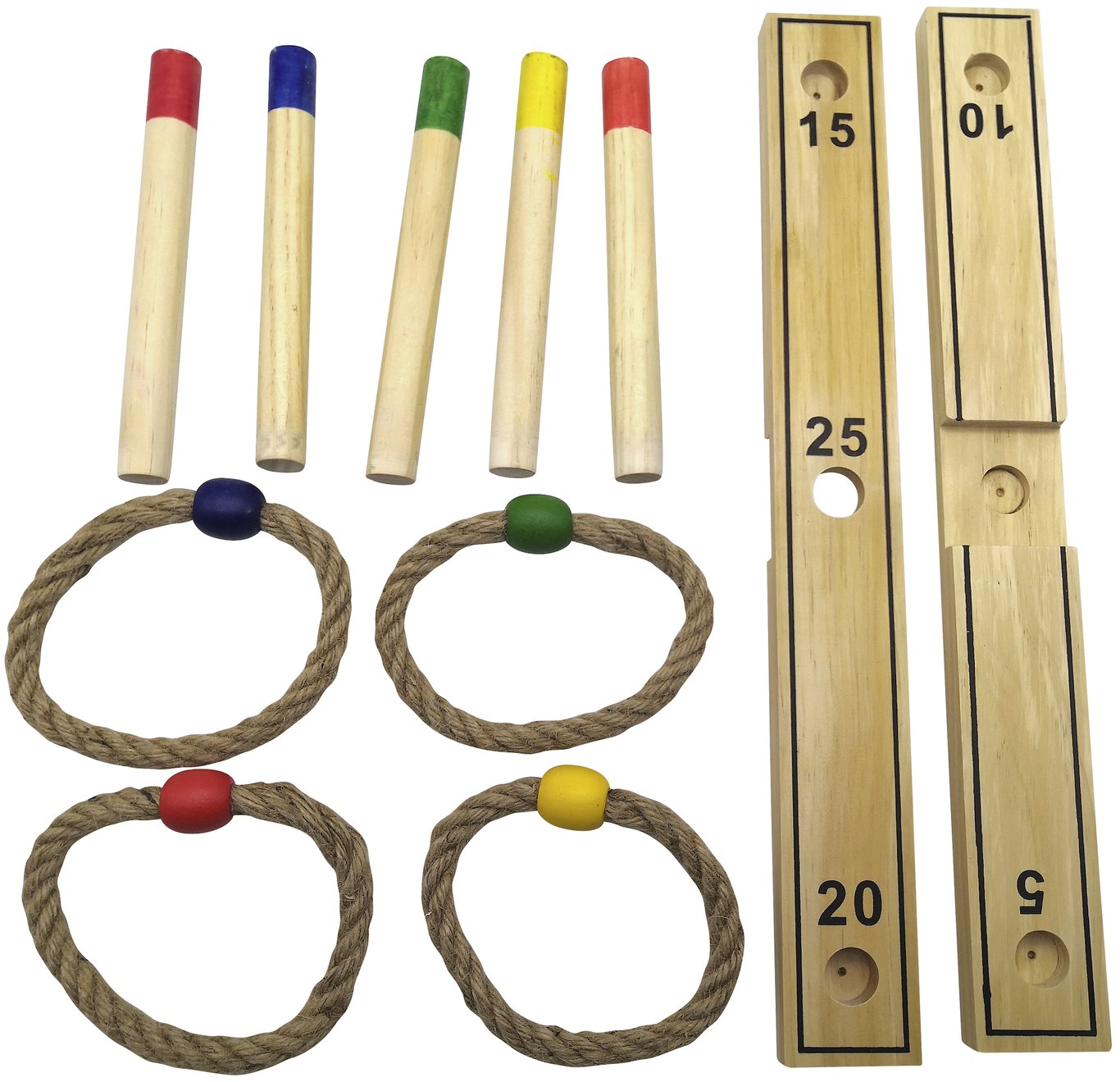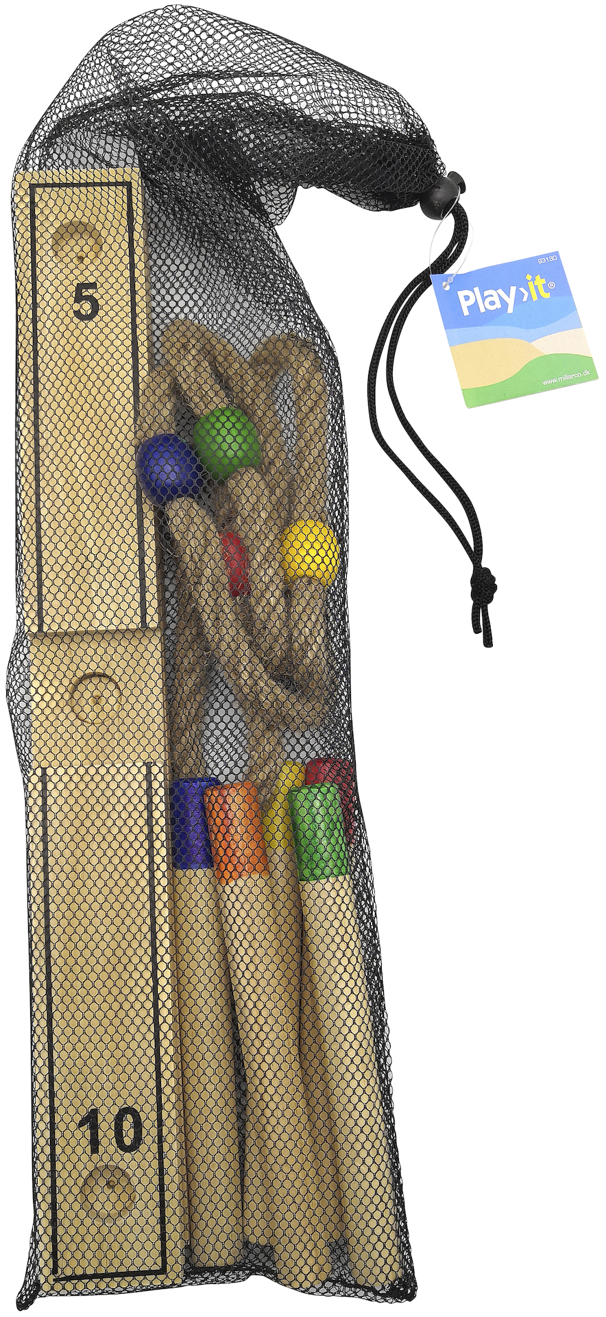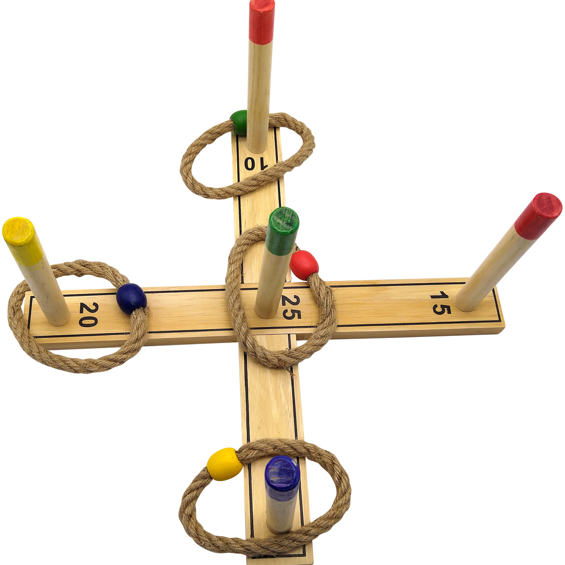 Ringspill i tre fra Play>it er en gøy aktivitet for hele familien. Den kommer i en praktisk nettpose som er perfekt for oppbevaring og transport av ringspillet.