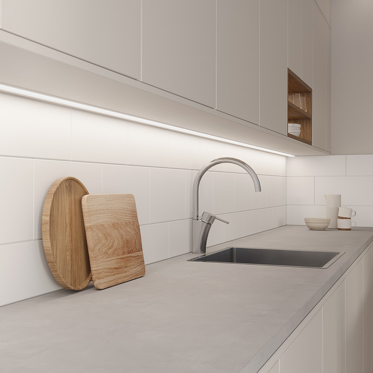 Den har høy tetthet for jevn lysfordeling uten synlige prikker, selv i tynne profiler. Stripen er IP66-klassifisert, kan deles hver 50 mm og monteres enkelt med dobbeltsidig tape i profiler fra 13 mm bredde.