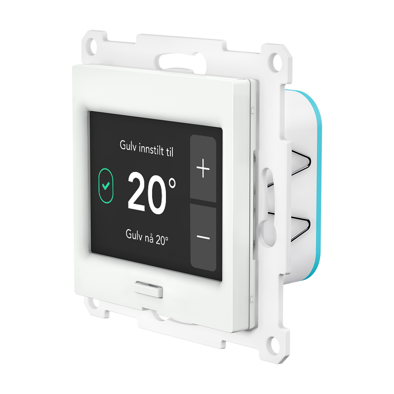 Dette er en smart termostat for elektrisk gulvvarme med skjerm og innebygd styring.