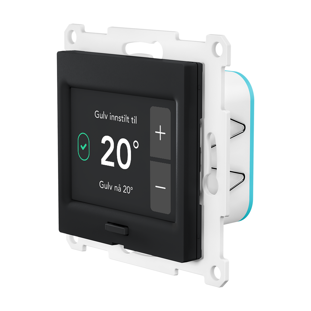 Denne termostaten er en smart termostat for elektrisk gulvvarme med innebygd skjerm og avanserte styringsmuligheter.