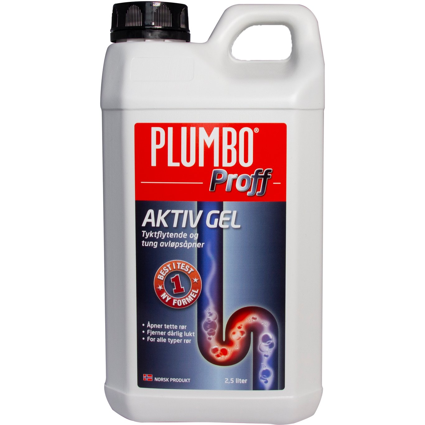 Plumbo Avløpsåpner Aktiv Gel proffversjon er sterk, tung og tyktflytende gel avløpsåpner. Den er ekstra godt egnet på baderom og avløp med lite fall, og kan også brukes i toaletter.