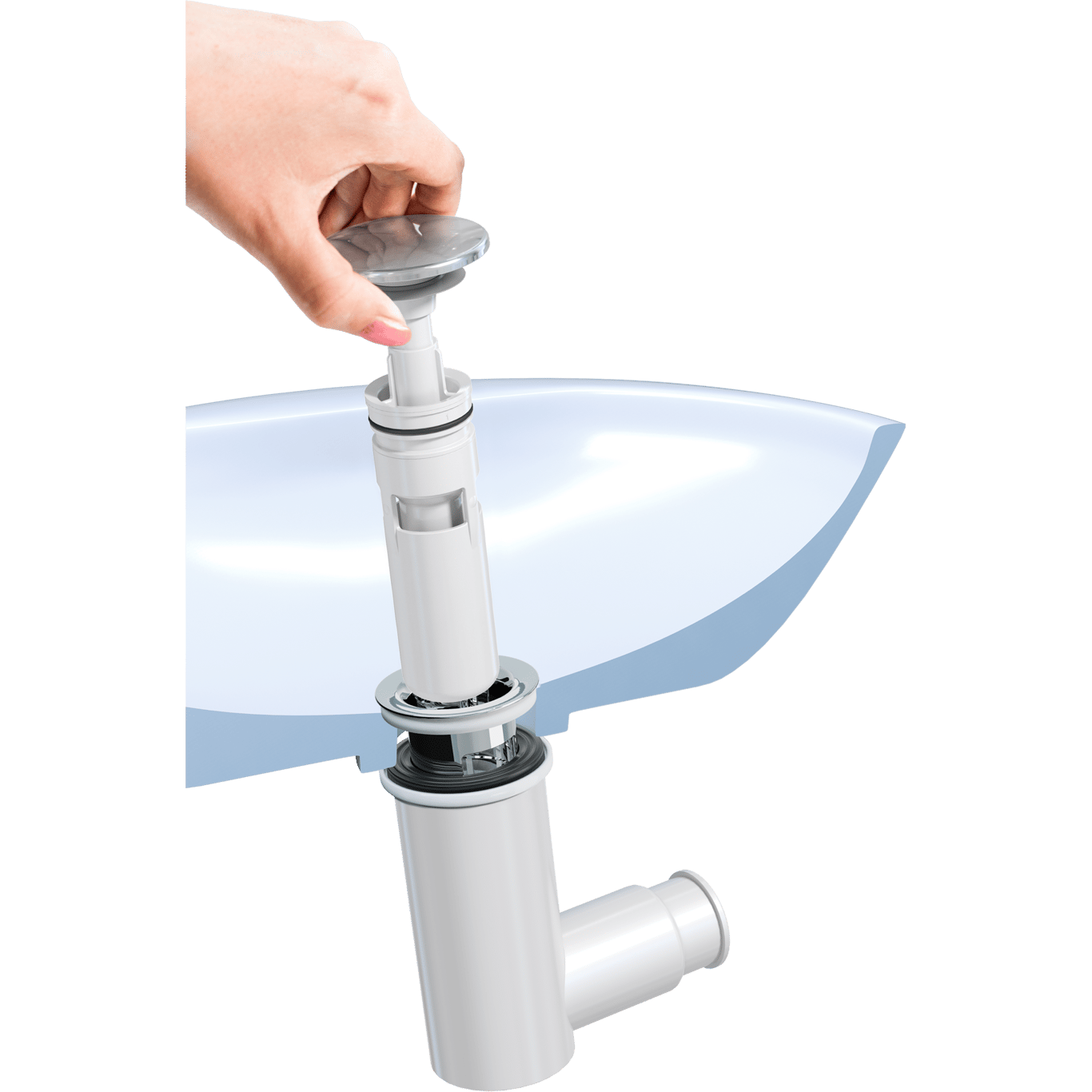 Denne vannlåsen fra Prevex er veldig enkel å rengjøre, og krever ingen verktøy. Denne varianten har en ventil i matt svart, og pop-up funksjon.