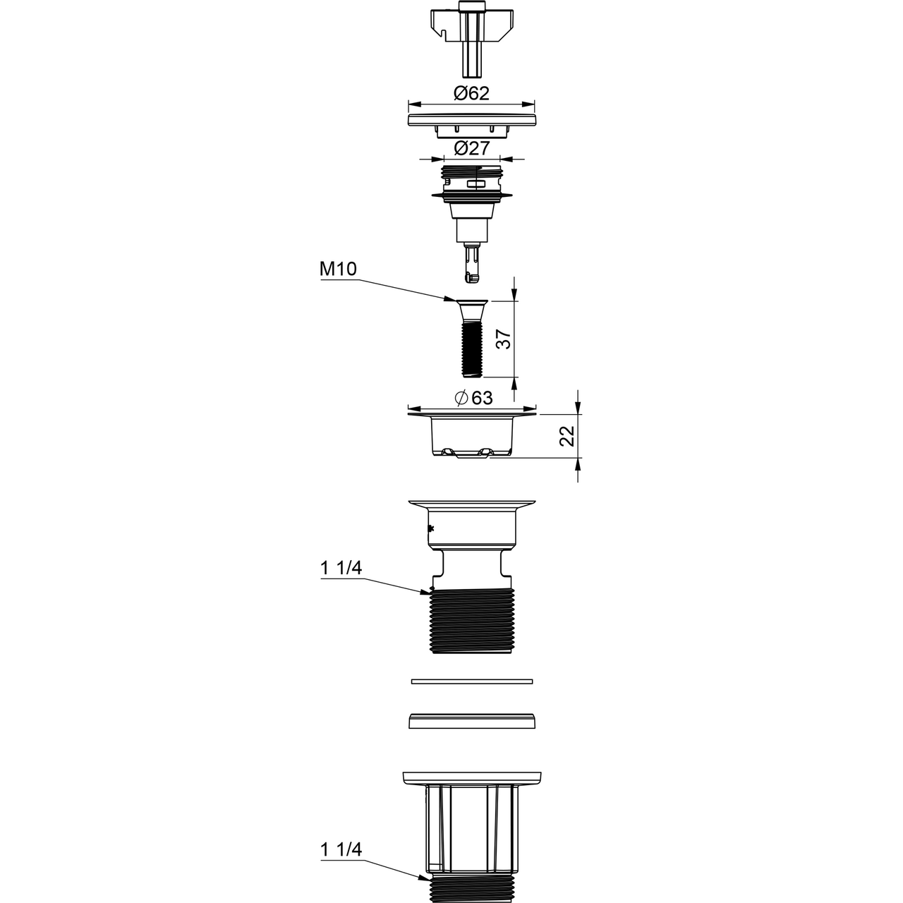 Prevex pop-up bunnventil 1 1/4" edelstål