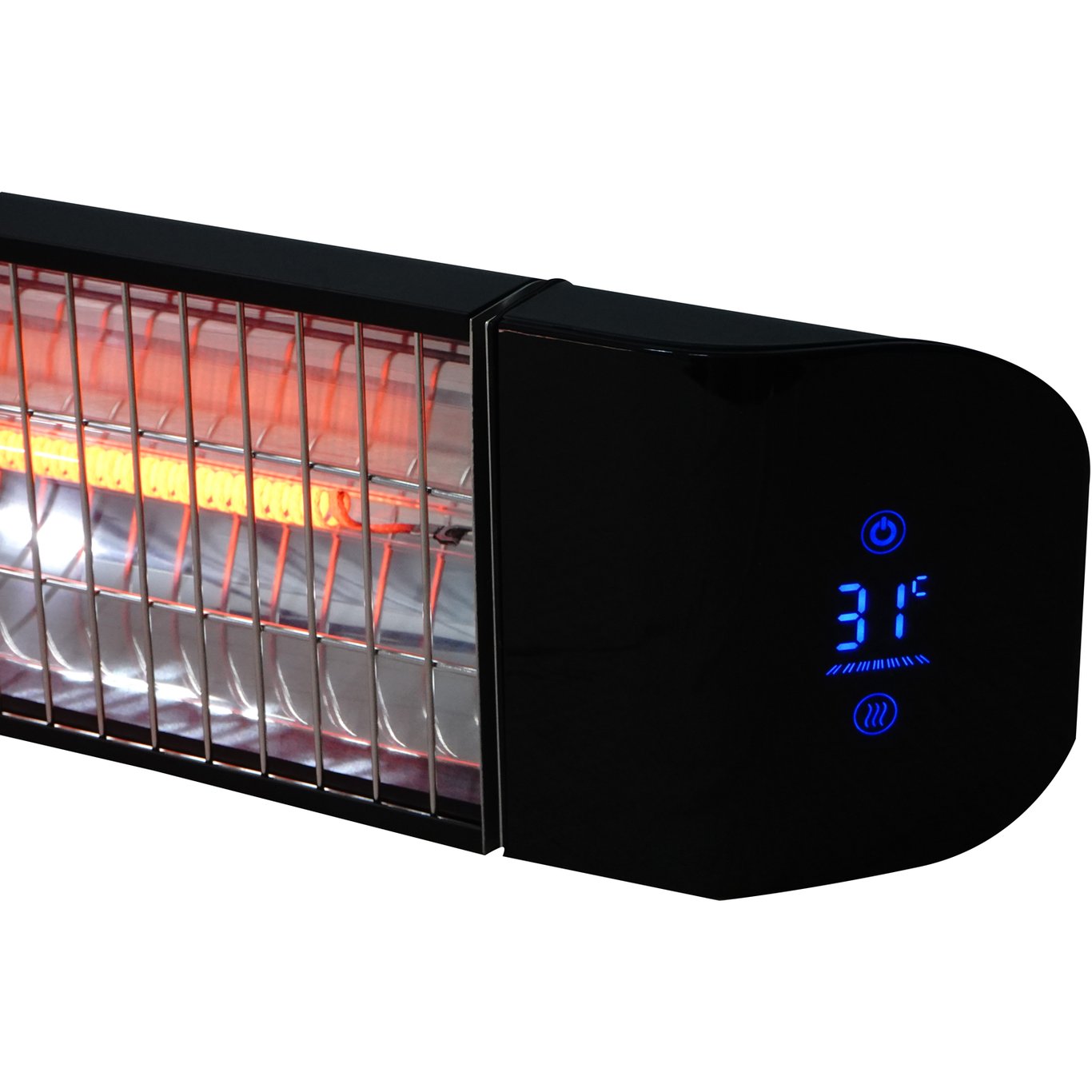 På grunn av karbonrøret avgir terrassevarmeren lite lys. Den har veldig god sidespredning, og dekker derfor et stort område. Terrassevarmeren har innebygd timer og termostat, og man kan velge mellom fire effektnivåer ved hjelp av den medfølgende fjernkontrollen.