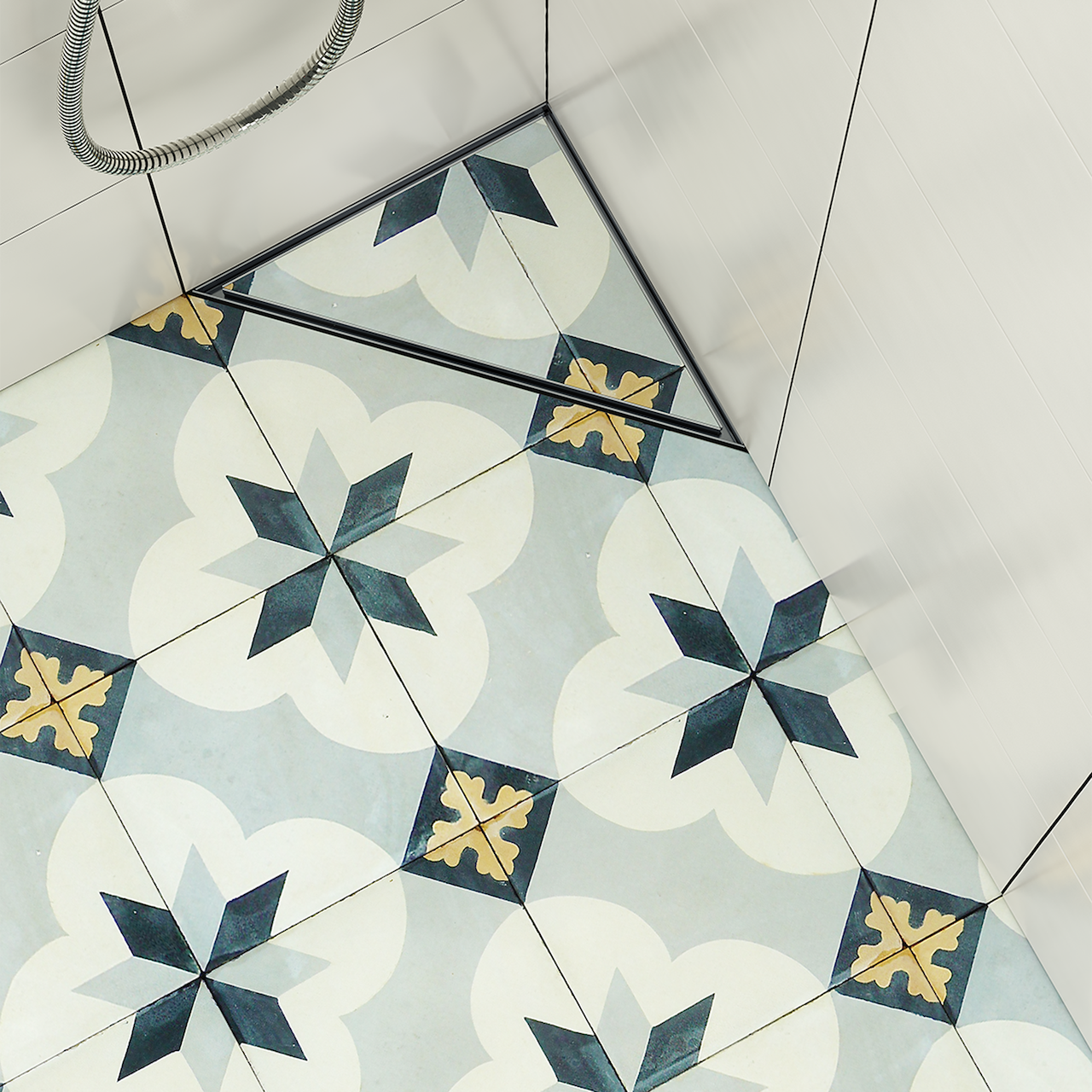 Komplett hjørnesluk hvor flis legges i rammen.