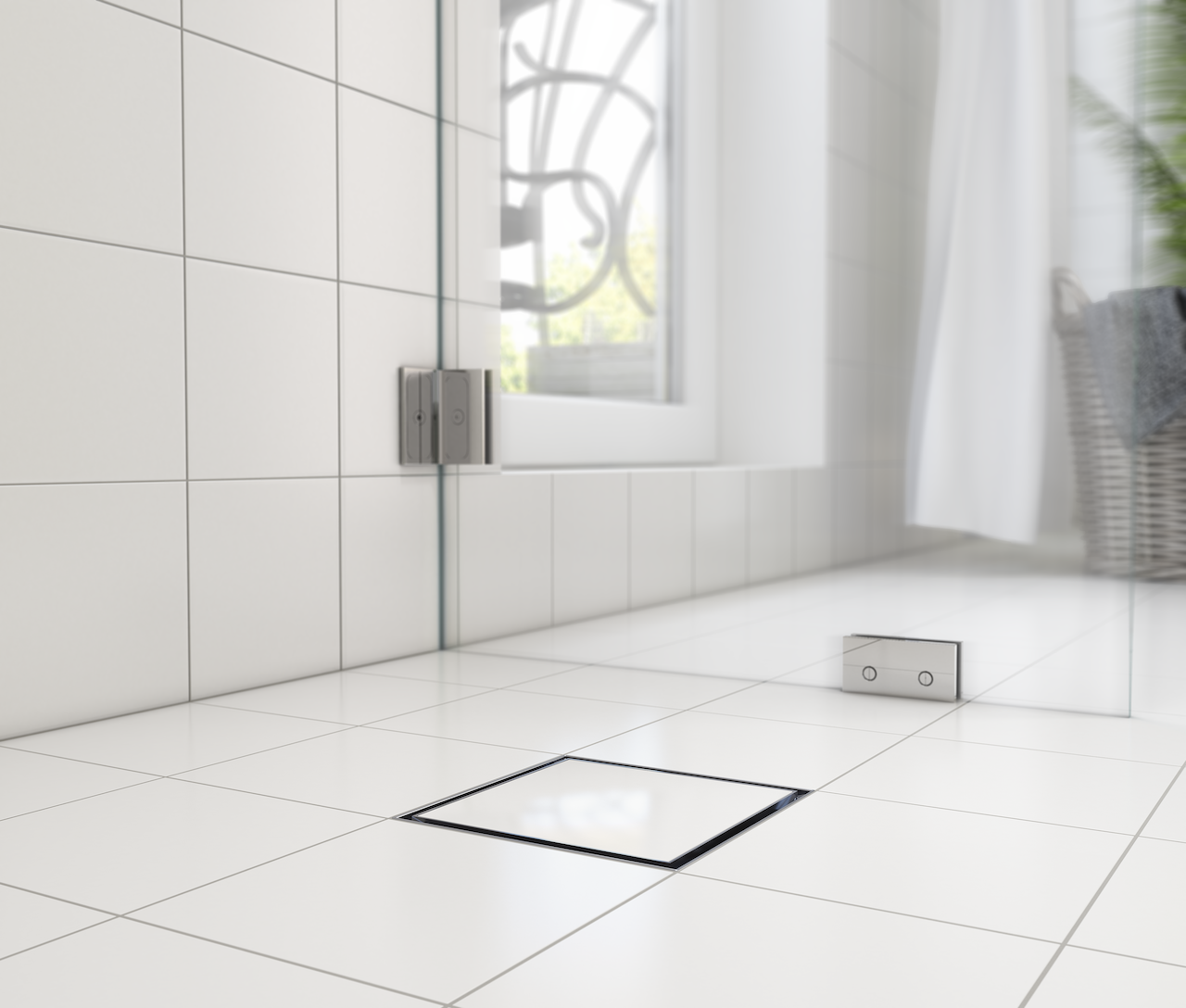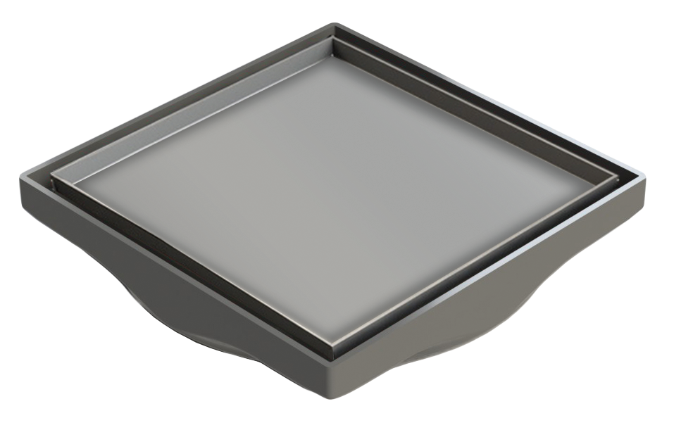 Kvadratisk designrist for flislagte gulv. Kan brukes på sluk med klemring i både plast og stål.
