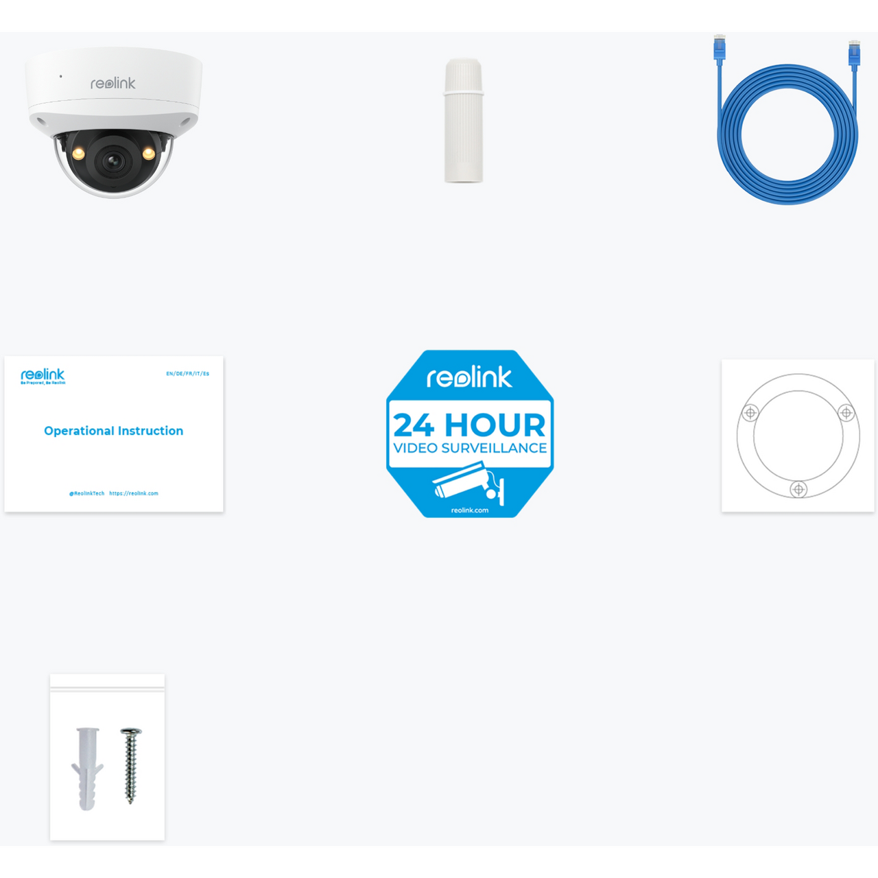 Dette kameraet fra Reolink er et robust 4K PoE-overvåkningskamera med smart deteksjon, spotlys og støtte for Reolink-appen, ideell for både inne- og utendørs bruk.