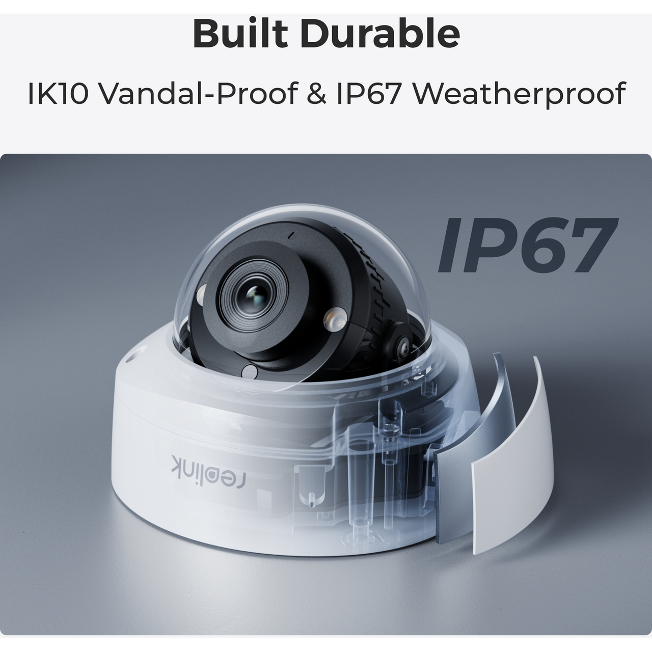 Med IK10 vandalsikring, IP67 værbeskyttelse og innebygd kunstig intelligens for presis bevegelsesgjenkjenning, får du et pålitelig sikkerhetskamera med sylskarpt bilde, selv i mørket.