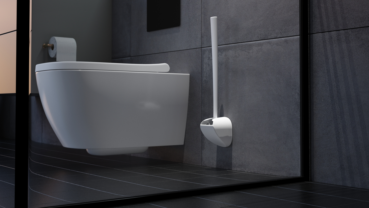 Denne toalettbørsten fra Sanimaid er hygienisk og minimalistisk, med veggmontering uten boring. Den har et fleksibelt, vannavstøtende og et dryppfritt rengjøringshode.