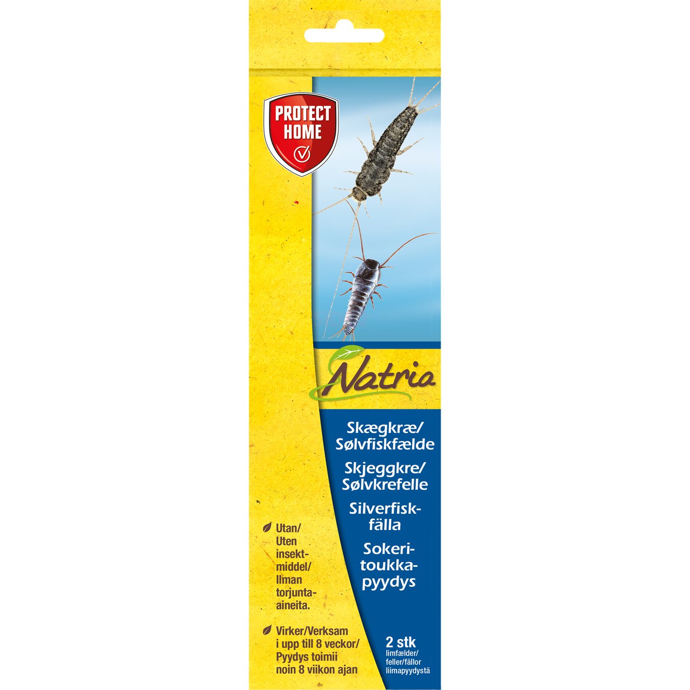 Fellen inneholder et stivelsesbasert lim som tiltrekker seg sølvkre og skjeggkre, og er aktiv i ca. 8 uker.