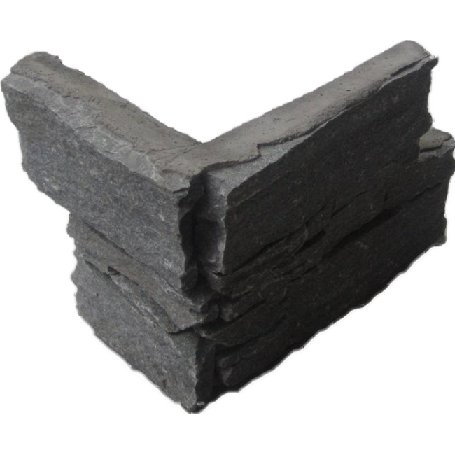 Fasadeskifer Cement Corner Black er en skifer hjørneflis i 30/20x20. Hjørnet satt sammen av skiferpaneler har en ujevn ubehandlet overflate i varierte koksgrå og sorte toner.
