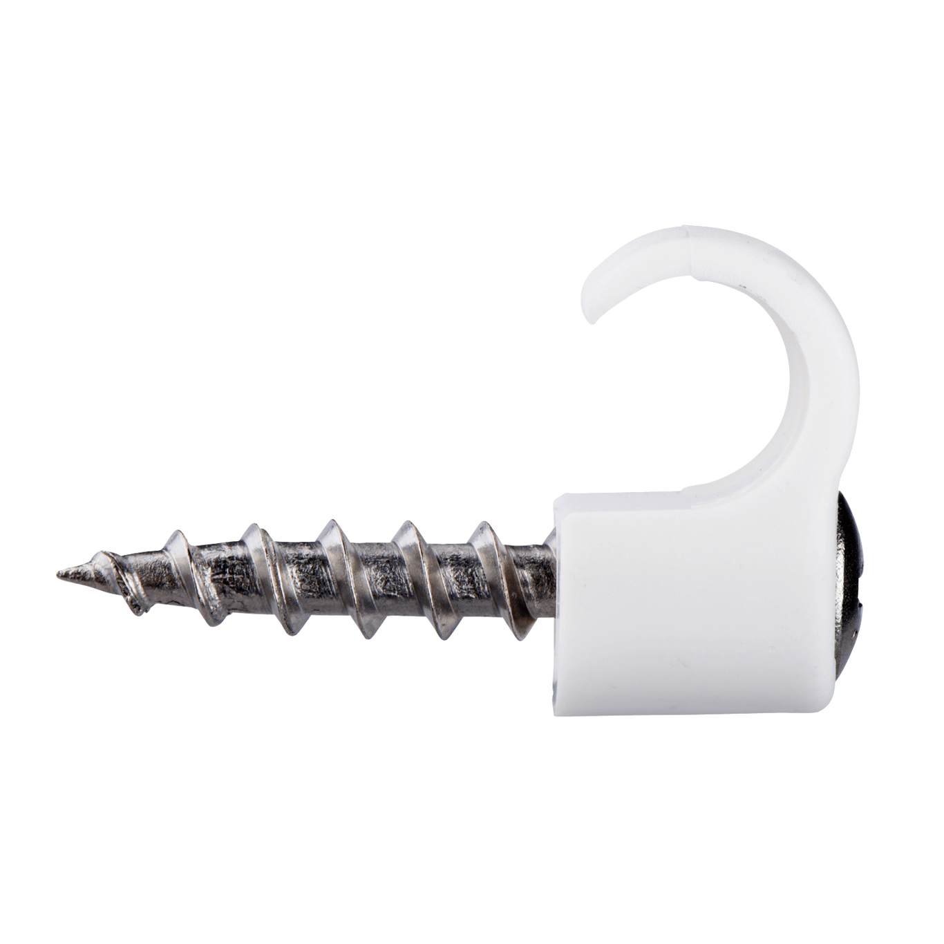 Skrueclips i slagfast polypropylen med høy UV motstandskraft for feste av runde standardkabler.