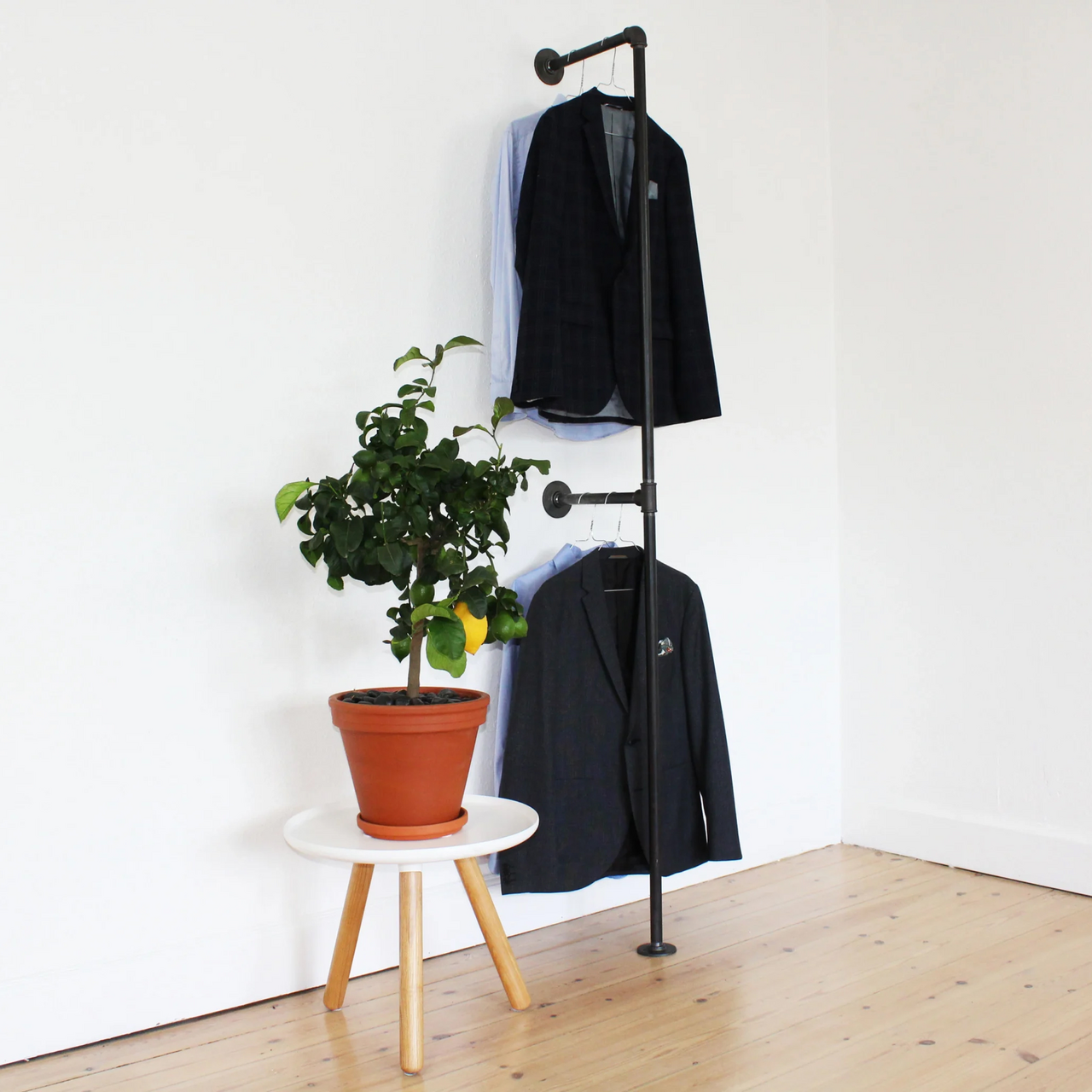 Denne klesstangen fra Simple Racks tilbyr et stilrent og funksjonelt design til oppbevaring i høyden, og passer derfor perfekt for oppbevaring der det er høyt under taket. Den holder klærne dine organisert og lett tilgjengelige, uten å ta opp gulvplass.