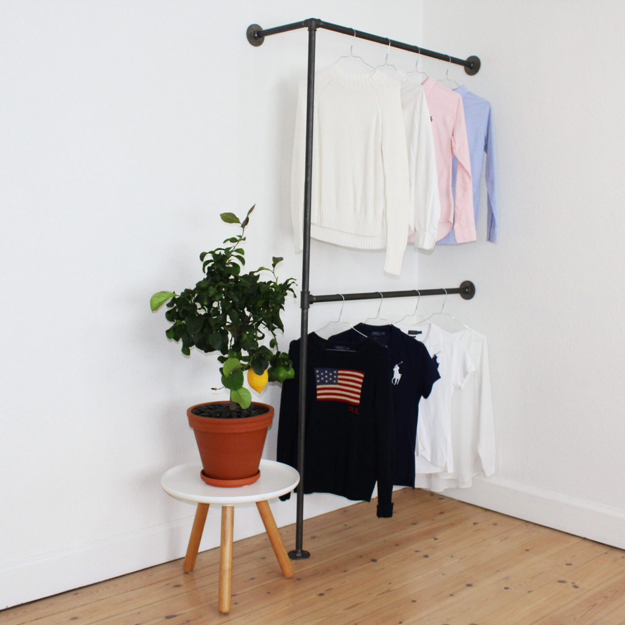 Dette vegghengte klesstativet fra Simple Racks tilbyr et stilrent og funksjonelt design til oppbevaring i hjørnet i gangen, på soverommet eller i garderoben. Den holder klærne dine organisert og lett tilgjengelige, og tar opp minimalt med gulvplass.