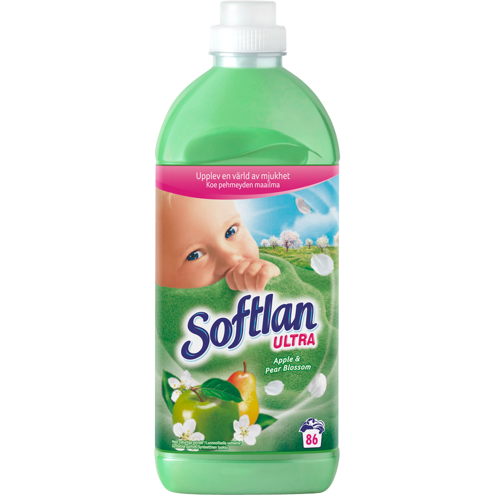 Med Softlan Ultra Apple & Pear Blossom tøymykner FR04564A får du mykere klær som er mer behagelige å ha på. Tøymykneren er nå basert på en ny oppskrift for bedre resultat og nydelig duft av blomstrende eple- og pæretrær. For opptil 86 vask.