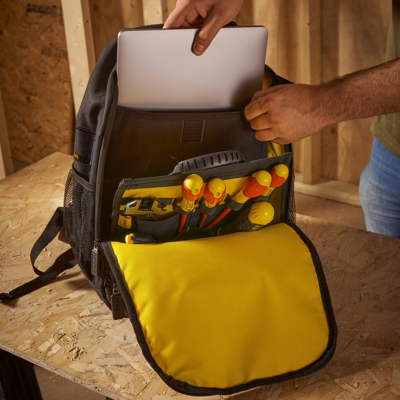 Denne verktøyryggsekken fra Stanley gjør transport og oppbevaring av verktøy enkelt, og gir deg frie hender til å gjøre andre ting. Den har en avtagbar avdeler med lommer for ofte brukte verktøy, og polstret rygg for ergonomisk og praktisk bæring.