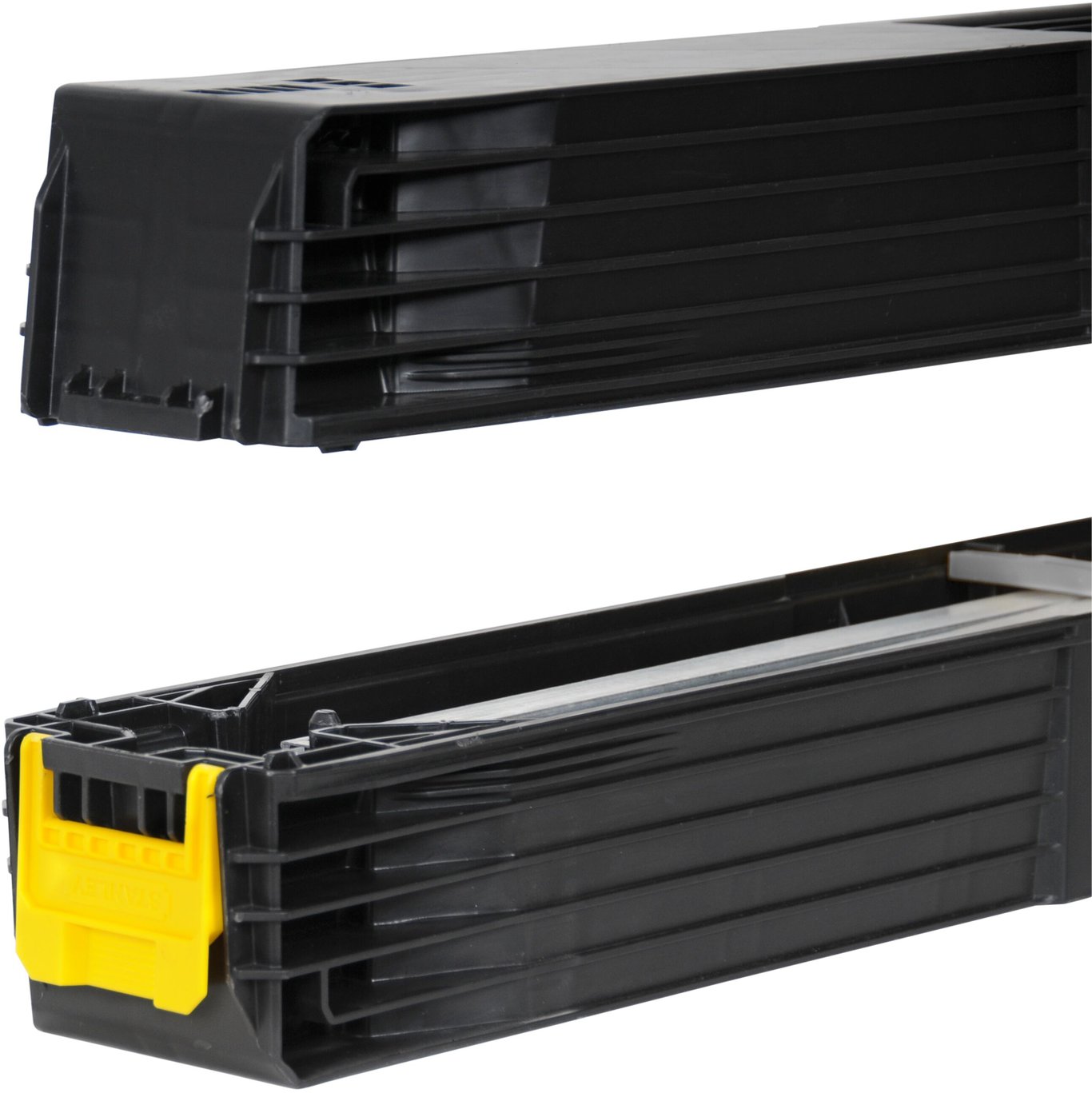 Disse sammenleggbare sagbukkene fra Stanley har ben i aluminium som gir en robust og stiv konstruksjon. Håndtaket gjør sagbukkene enkel å transportere, og hengslene på siden lar deg sammenkoble enhetene ved oppbevaring. Benene brettes enkelt inn i toppen under transport.