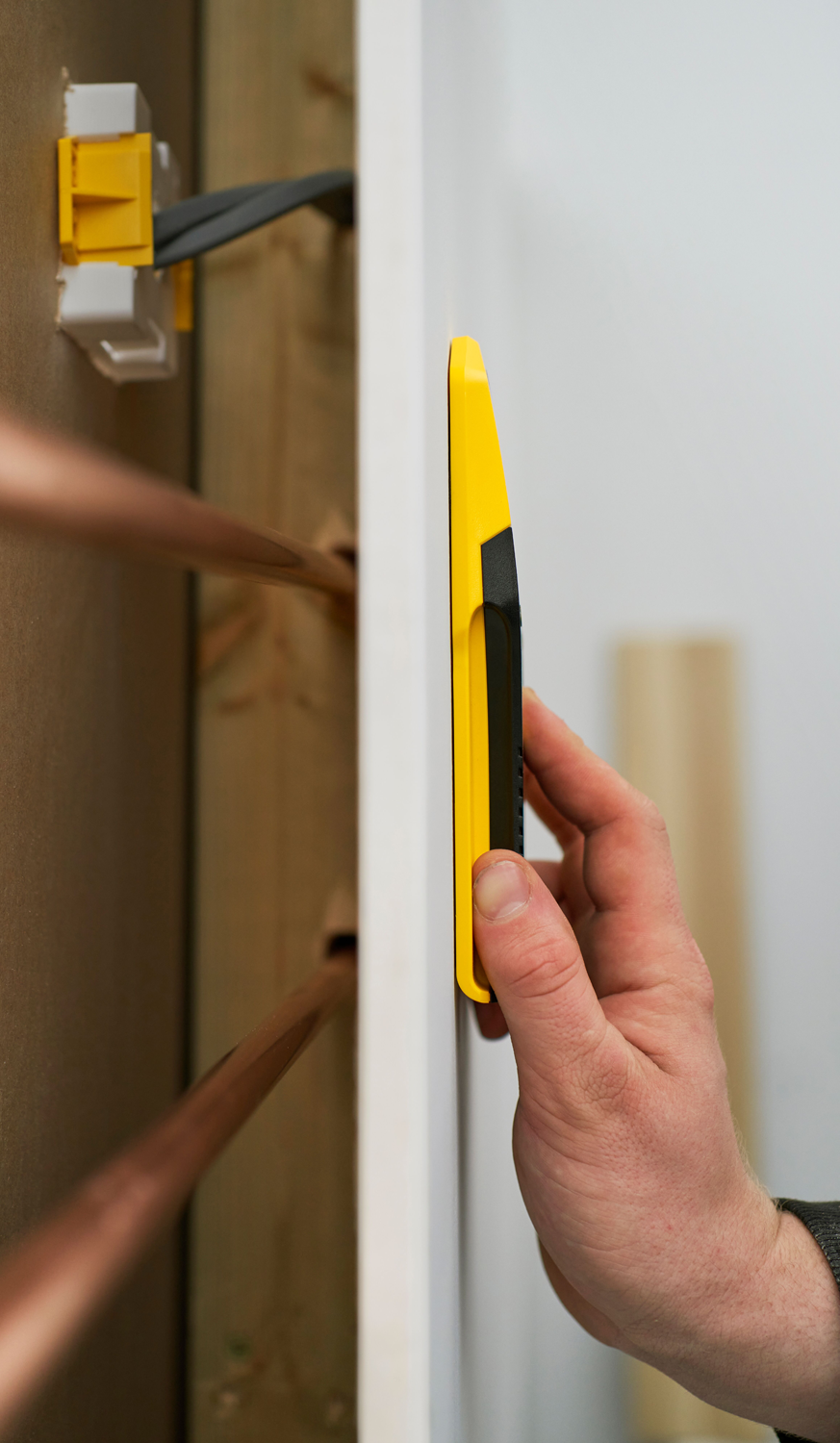 Denne stenderfinneren fra Stanley oppdager tre, metall og strømførende ledninger. Den er perfekt til å finne stendere så du enkelt vet hvor du kan henge opp ting som bilder, hyller og TV'er.