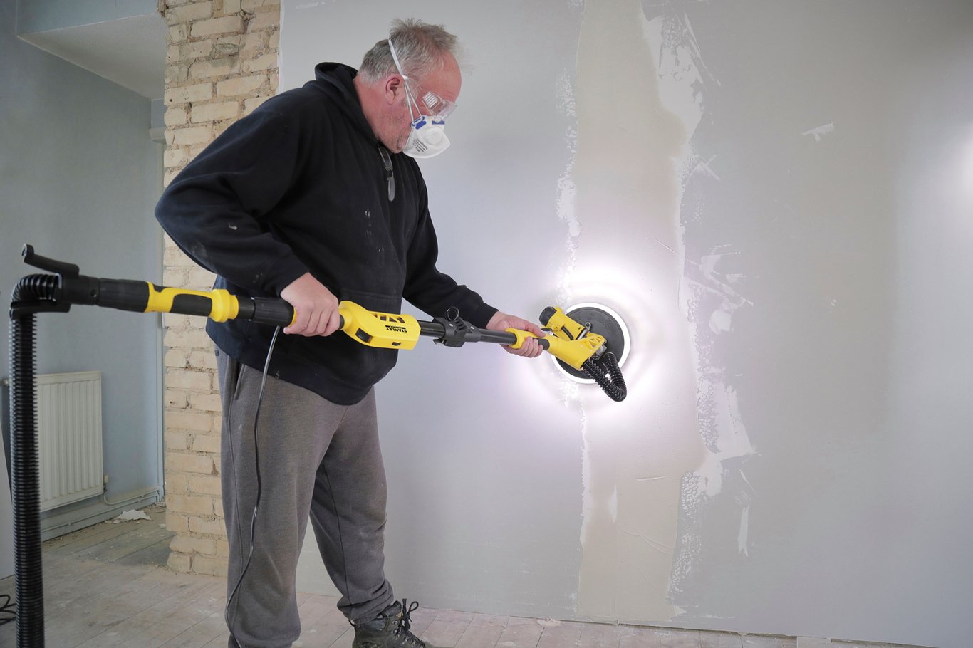 Denne slipemaskinen fra Stanley lar deg raskt og støvfritt slipe gipsplateskjøter på vegg og tak. Skaftet kan enkelt forlenges opptil 1,8 meter, og det sammenleggbare håndtaket gjør det enkelt å transportere og oppbevare.