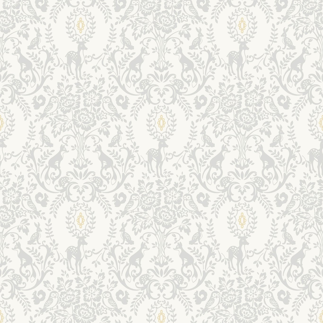 Denne vinyltapeten fra Storeys er en del av kolleksjonen Jack'n Rose, en koselig tapetkolleksjon for barnerommet. Denne tapeten har et klassisk motiv av ornament og dyr.