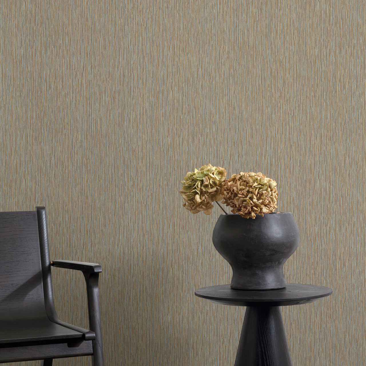 Denne tapeten er en elegant tapet med et dempet, stråtapet uttrykk i varme brune og gråblåtoner.