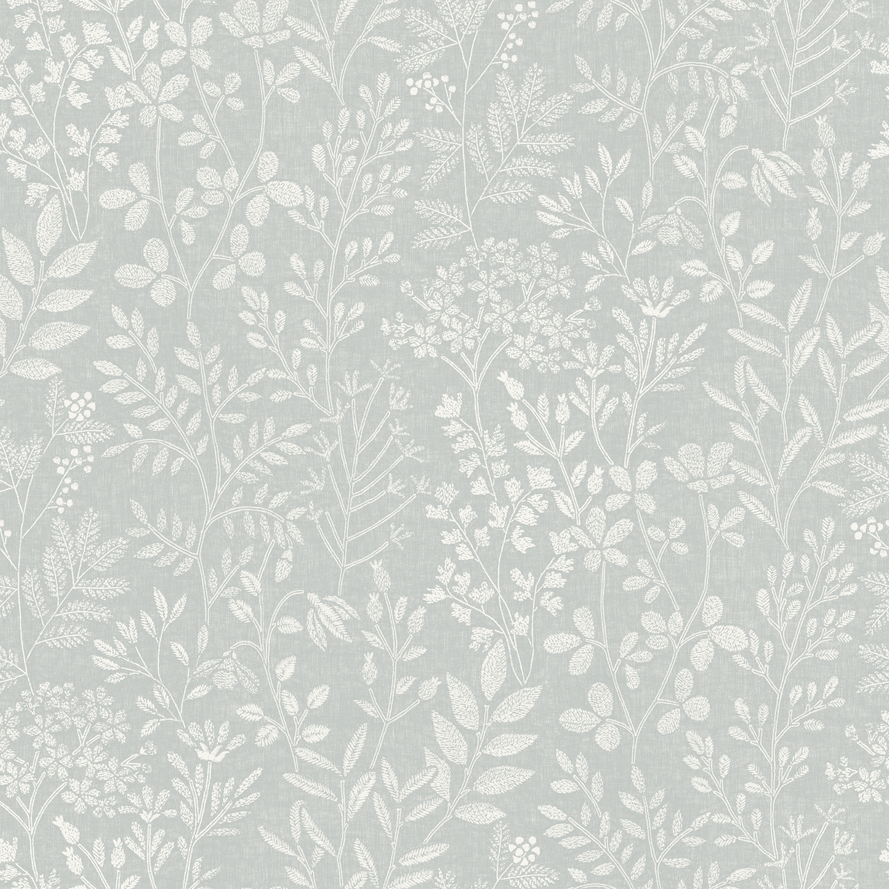 Denne tapetprøven fra Storeys er en elegant tapet med blå naturlig tekstilstruktur og dempet hvite organiske bladmønstre, med en dybde og variasjon i overflaten som skaper liv uten å dominere.