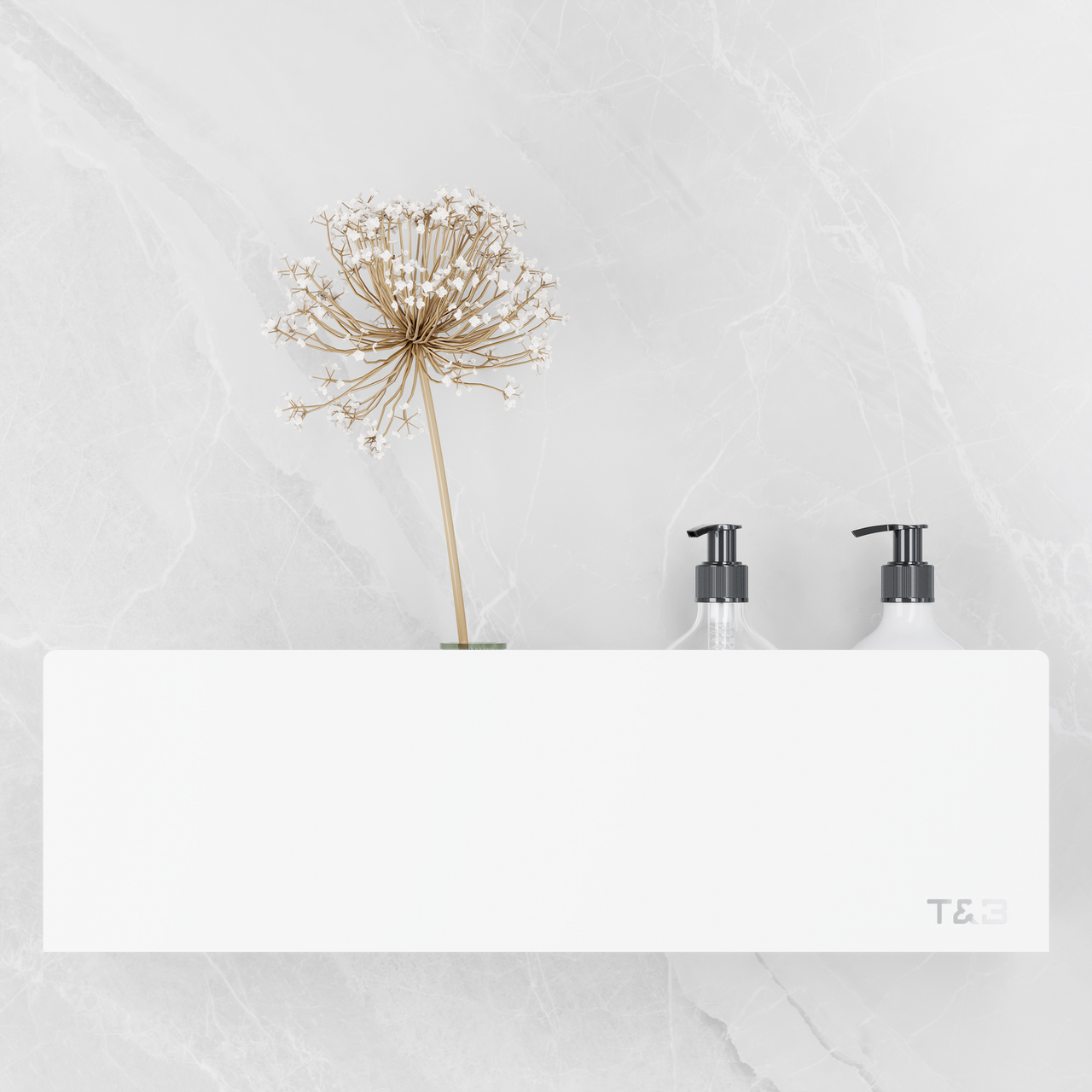 Med T&B hyllen får du to monteringsmuligheter: Bruk den medfølgende 3M-tapen for godt feste uten boring, eller velg tradisjonell skrumontering for ekstra stabilitet. Skruer kjøpes separat.