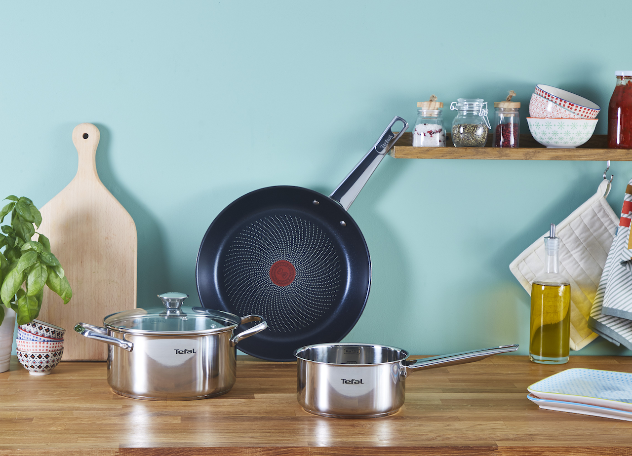 Dette robuste 4 deler grytesettet fra Tefal kommer i slitesterkt rustfritt stål med solide ergonomiske håndtak.