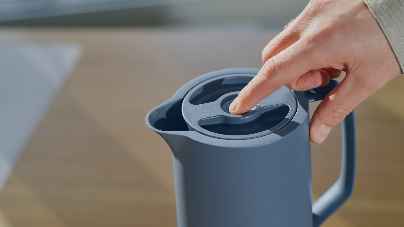 Skrulokket er lett å åpne, og har en praktisk åpne/lukke-mekanisme som gjør at du kan betjene termokannen med én hånd.