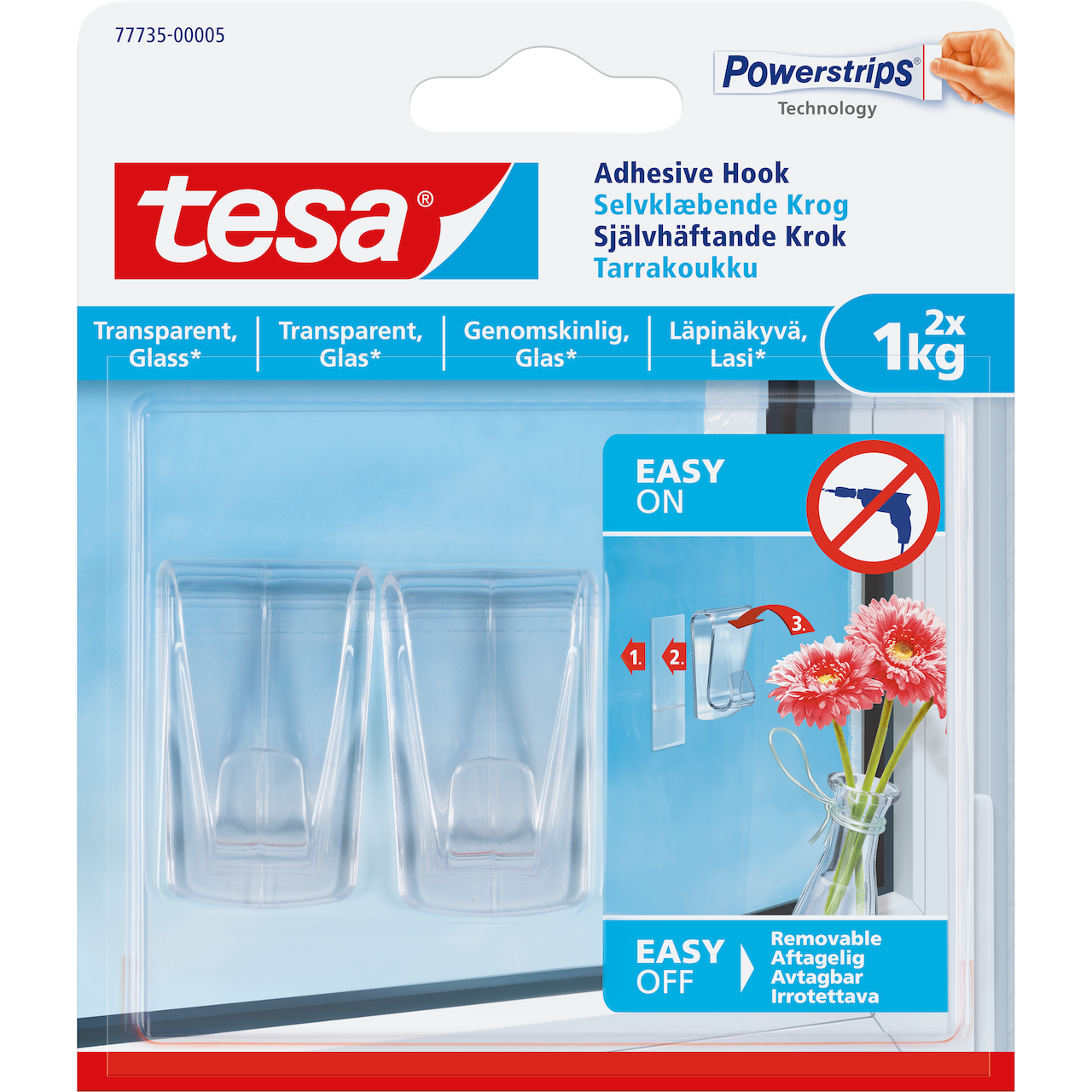 Hver tesa limkrok for gjennomsiktige overflater og glass kan holde gjenstander som sesongmessige dekorasjoner og kranser opptil 1 kg. Siden de er mer eller mindre usynlig, og du ikke trenger en boremaskin eller verktøy i det hele tatt, er de perfekte for gjennomsiktige og faste overflater som vinduer, glassdører og speil. Powerstrips-teknologien de benytter seg av betyr at de kan fjernes og gjenbrukes - alt uten å etterlate limrester eller forårsake noen skade.