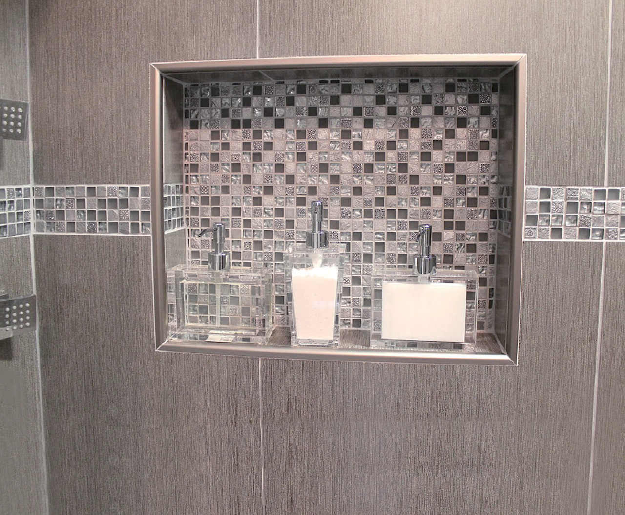 Denne stilrene veggnisjen til baderommet kan brukes i dusj for oppbevaring av såpe, eller som nisje i veggen for pynt.