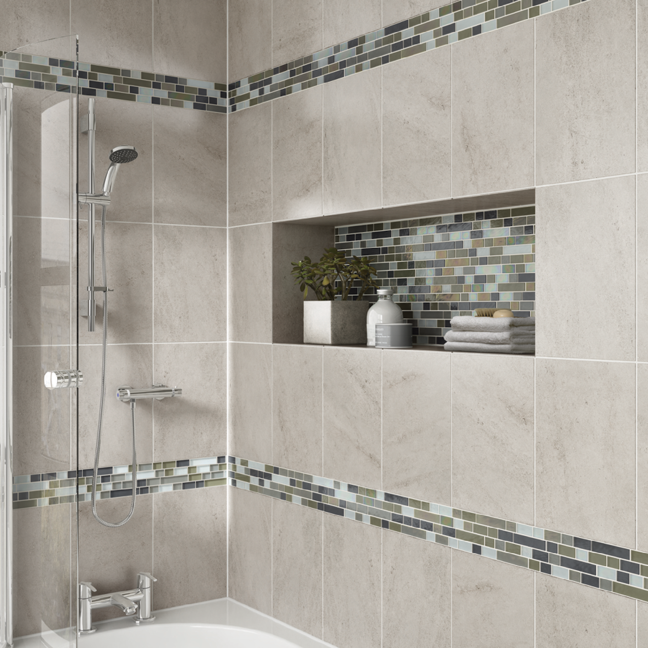 Denne stilrene veggnisjen til baderommet kan brukes i dusj for oppbevaring av såpe, eller som nisje i veggen for pynt.