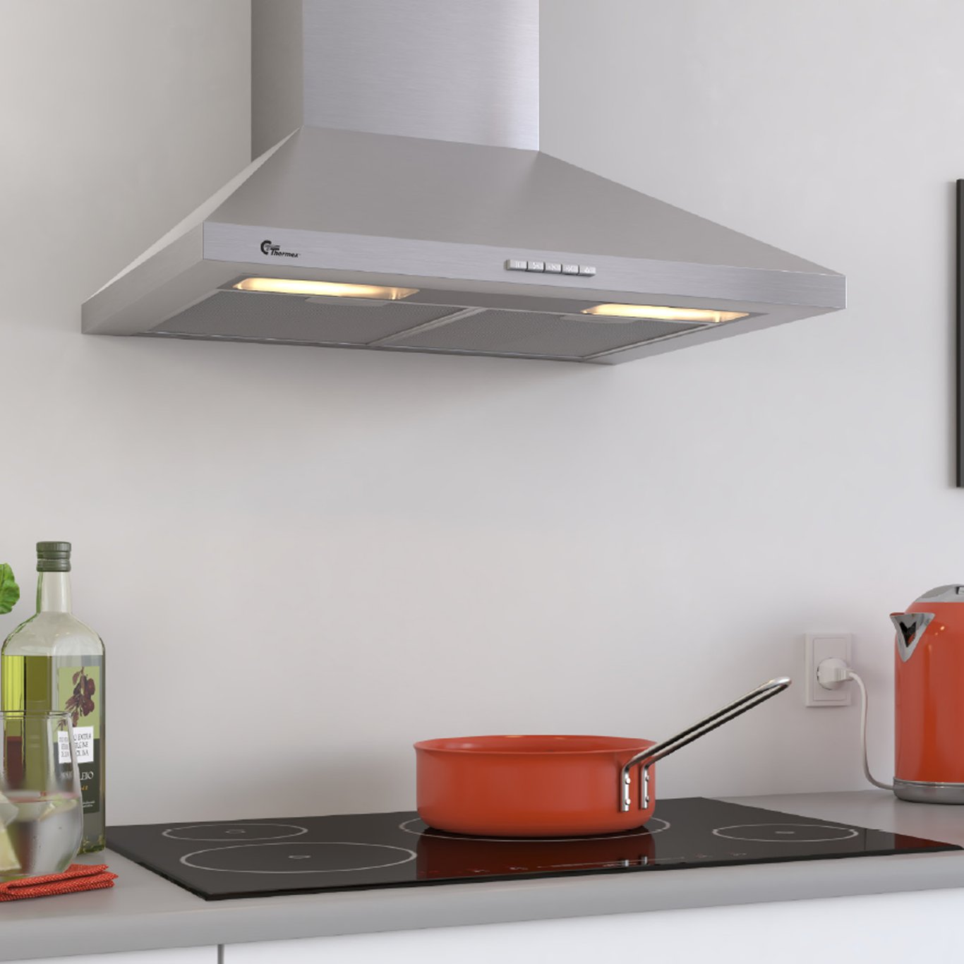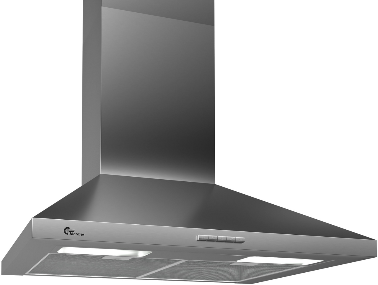 Denne kjøkkenhetten fra Thermex kommer i rustfritt stål, og er til montering på vegg. Den har tre hastigheter å velge mellom.