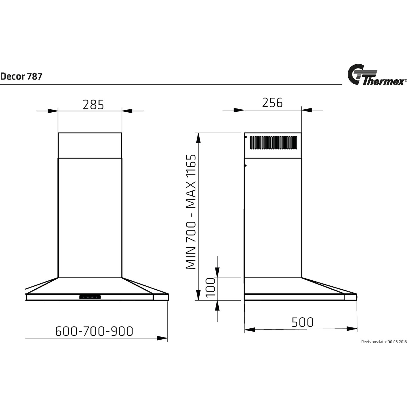 Denne kjøkkenhetten fra Thermex har et stilrent design, og er 70 cm bred. Den har tre hastigheter å velge mellom, og en boost-funksjon.