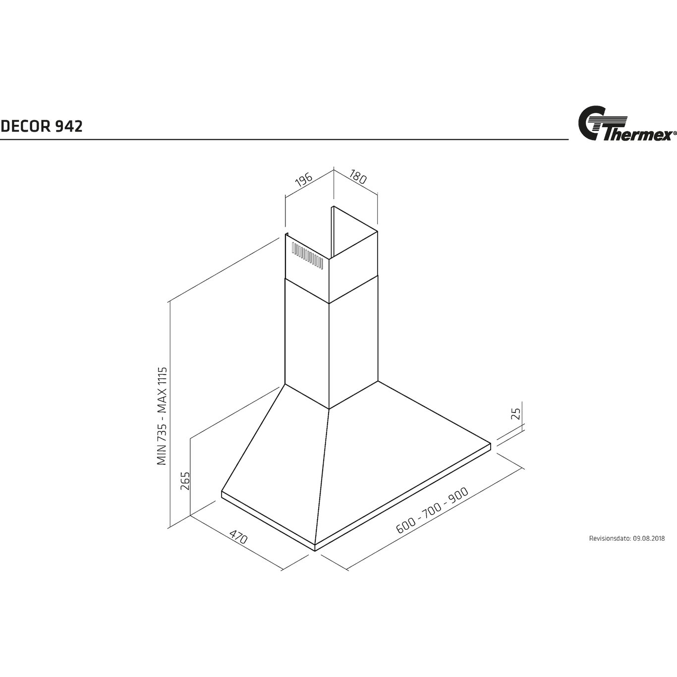 Thermex decor 942 kjøkkenhette 60cm rustfritt stål m/motor