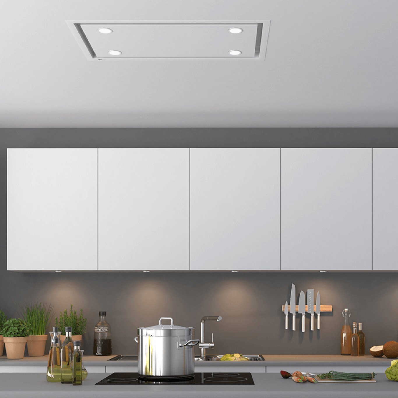 Denne stilrene kjøkkenviften fra Thermex monteres i taket, og gir et moderne og diskré uttrykk på kjøkkenet. Perfekt til åpne kjøkkenløsninger hvor platetoppen er plassert på en kjøkkenøy.