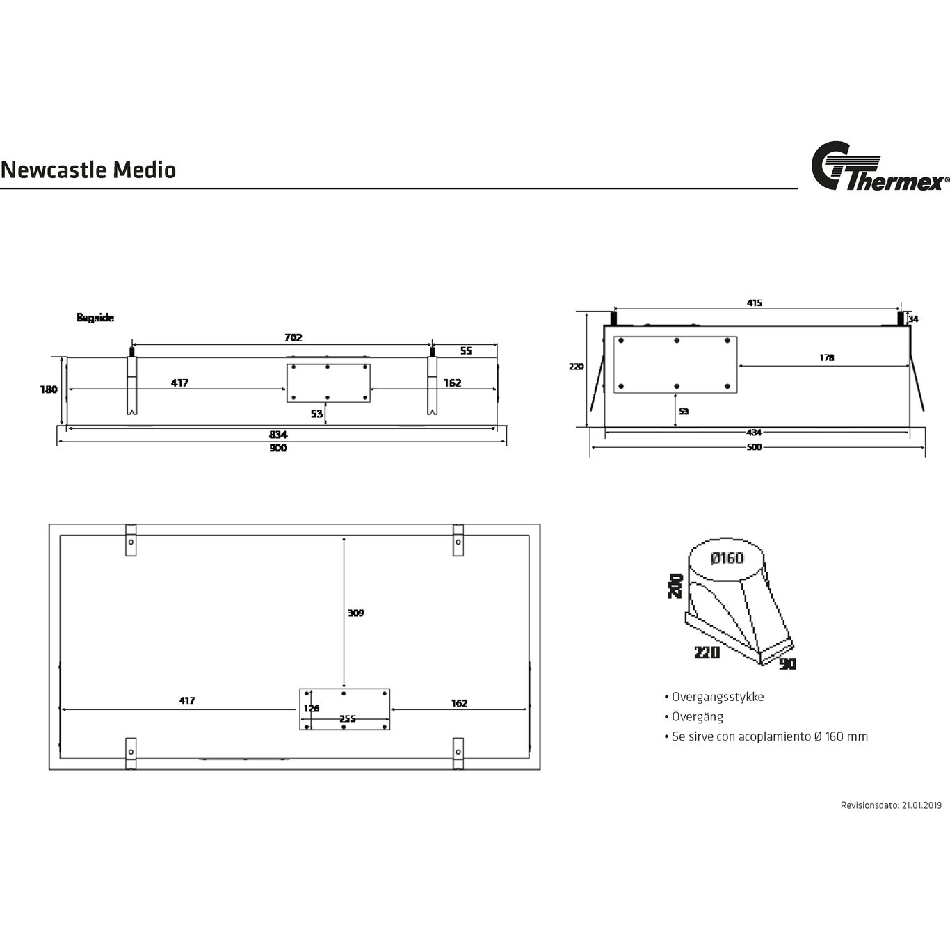 Thermex newcastle medio kjøkkenvifte u/motor hvit