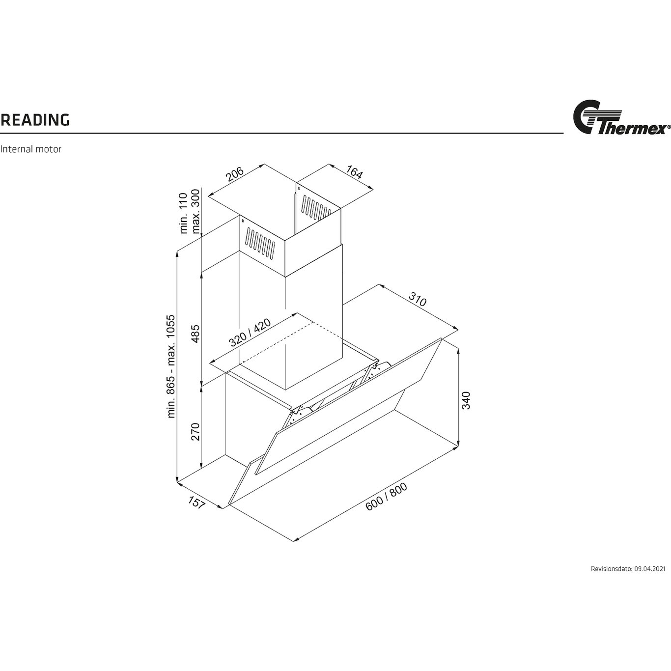 Thermex reading kjøkkenhette 80 cm sort m/motor