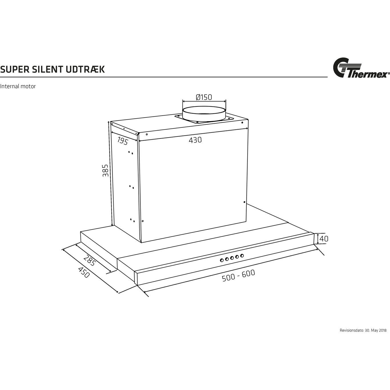 Thermex super silent uttrekkbar kjøkkenhette m/motor 60cm