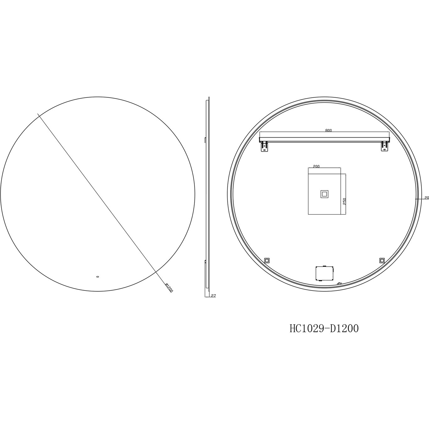 Touch funksjonAnti-dugg i midten av speiletFølger med: oppheng og skruerTekniske spesifikasjoner
