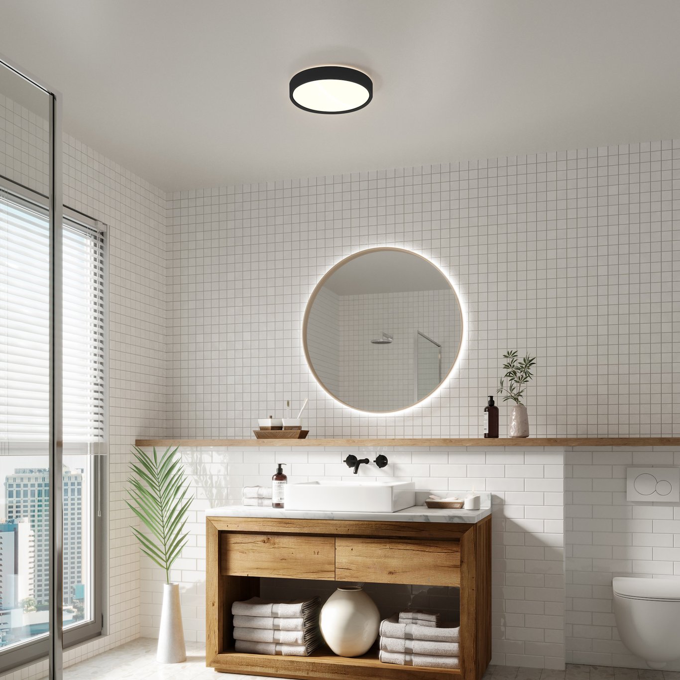 Denne plafonden fra Nordlux har integrert LED som gir et behagelig varmhvitt lys. Den høye IP-graden gjør at den egner seg godt i fuktigere rom, som for eksempel på badet eller i kjelleren.