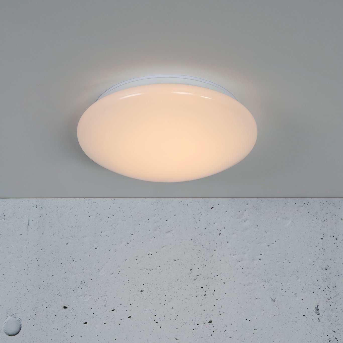 Denne taklampen fra Nordlux har integrert LED som gir et behagelig varmhvitt lys. Den høye IP-graden gjør at den egner seg godt i fuktigere rom, som for eksempel på badet eller i kjelleren.
