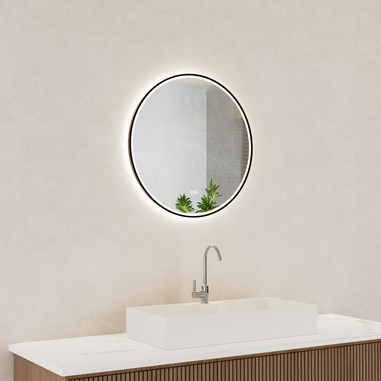 Foran på speilet er det to touchknapper, hvor den ene brukes til å skru på/av, justering av fargetemperatur og dimming. Den andre touchknappen brukes for å sku på/av anti-dugg-funksjonen. Anti-dugg-funksjonen vil også skru seg av automatisk etter 30 minutter. Minnefunksjonen vil huske siste innstilling på speilet.