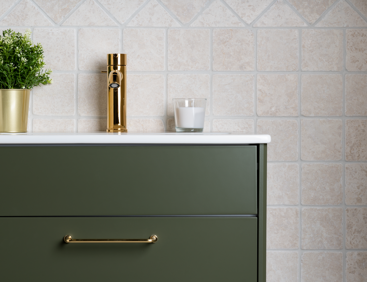Botticino Antique er en naturstein i fliseformat som kan benyttes på de fleste flater i huset.