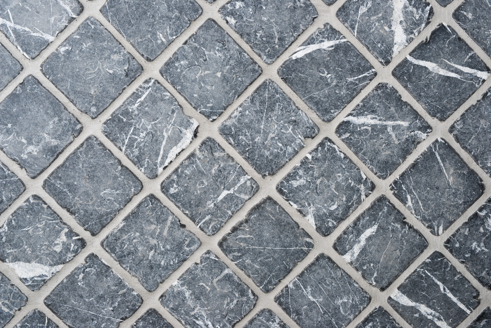Nero Marquina er antikk marmor i 10x10 fra Italia. Flisen har en noe ujevn halvmatt overflate med marmoreringer i lyse gråtoner, på en koksgrå flate.
