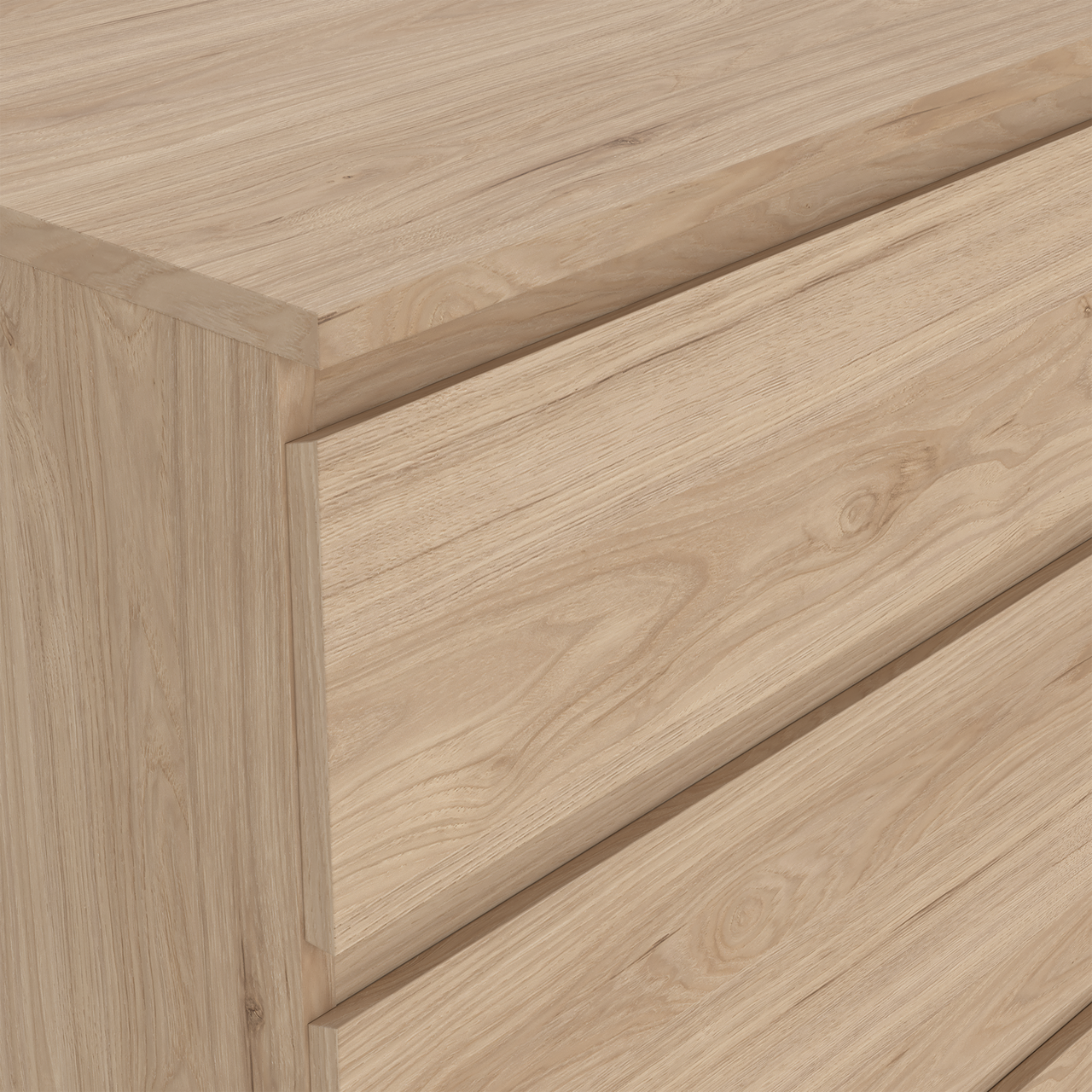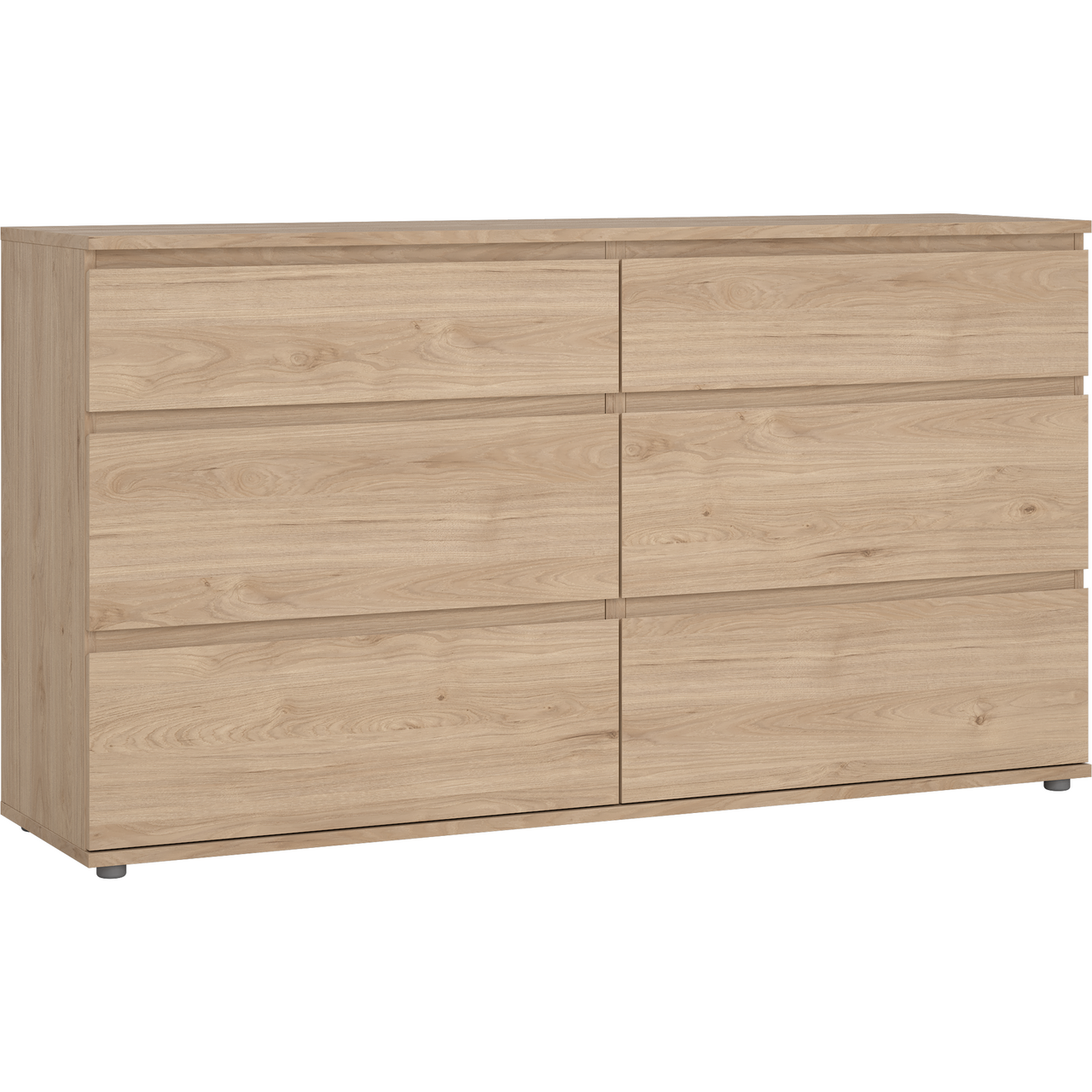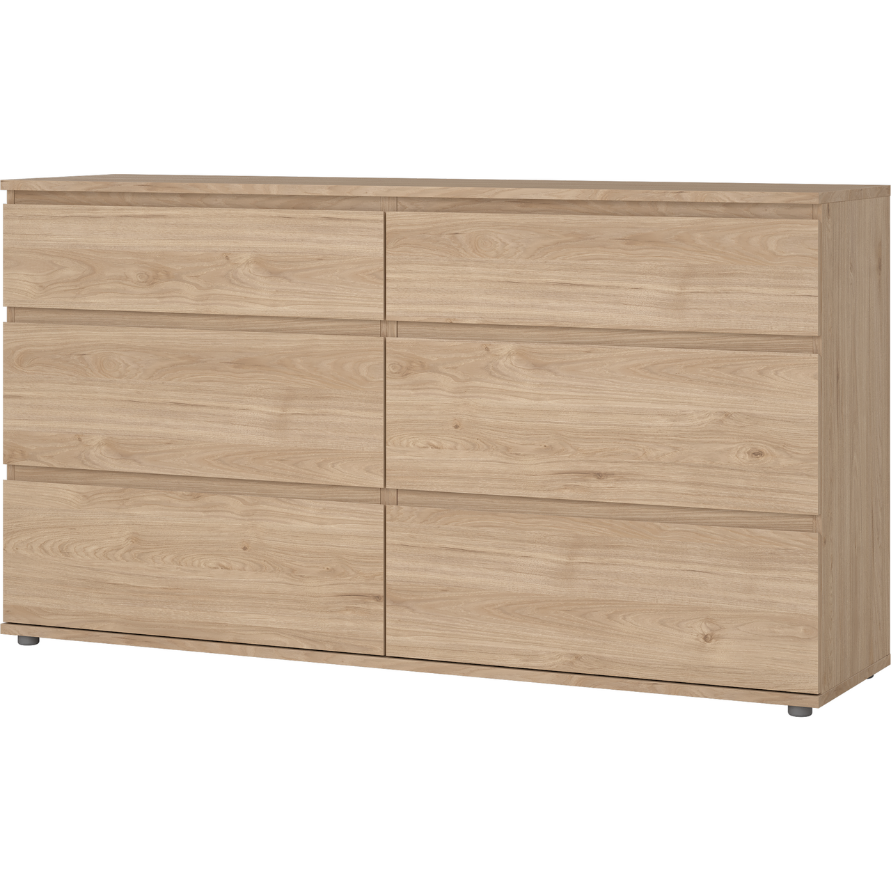 Nova kommode fra Tvilum kommer med et minimalistisk utseende og en funksjonell oppbevaring som passer godt inn i ethvert hjem. Overflaten er foliert med en dekor som gir utseendet av naturlig eik, noe som fremhever det tidløse og moderne uttrykket.