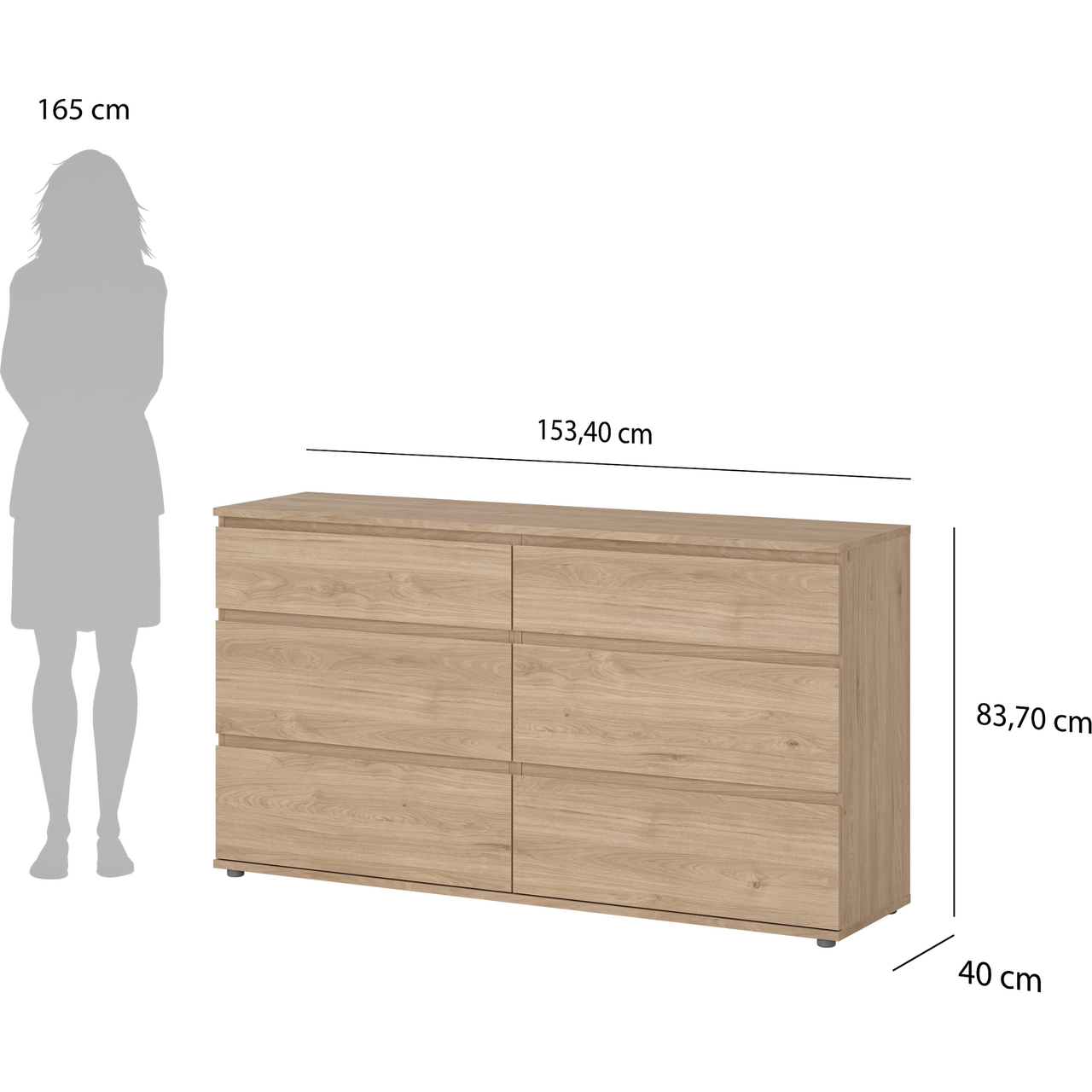 TVILUM NOVA KOMMODE EIK 6 SKUFFER 153X40X84